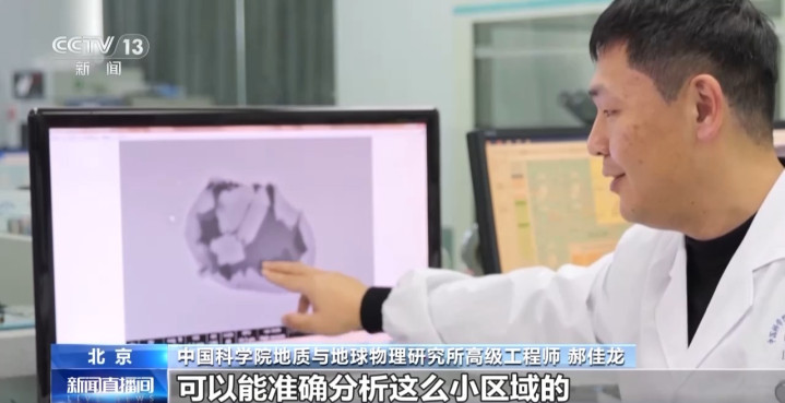 中国科学院地质与地球物理研究所高级工程师郝佳龙:我们通过对仪器进行优化改造,可以准确分析这么小区域的包裹体的成分。通过改变一次离子束的束流强度,以及对我们仪器的真空系统进行了升级,把它原来的分析束斑降得更小,才能满足我们嫦娥六号样品的低含量、小包裹体的水含量的分析。