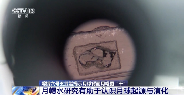 这张嫦娥六号岩屑颗粒的照片实际上是放大了数百倍之后的效果,它的真实大小仅有5微米,科研人员表示,要通过这么小的颗粒,确认它所在的月幔区域的水含量,是一项新的挑战。