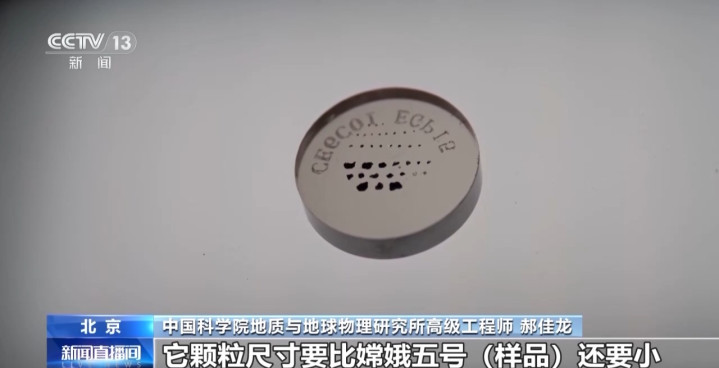 中国科学院地质与地球物理研究所高级工程师郝佳龙:嫦娥六号样品,我们待测的水的包裹体,它的颗粒尺寸要比嫦娥五号样品还要小,都达到10微米及以下的尺寸,而常规的分析方法都是在10微米,甚至达到20微米的。